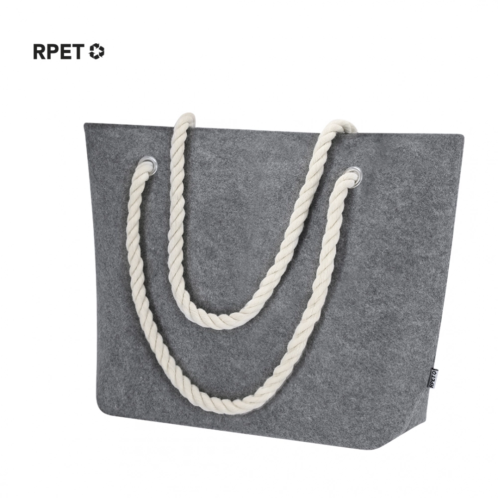 Сумка из переработанного фетра. С хлопковыми ручками, усиленными кольцами и клиньями. Выдерживает до 6 кг. Этикетка RPET на внешнем ярлыке. Материал RPET изготовлен из переработанного пластика
